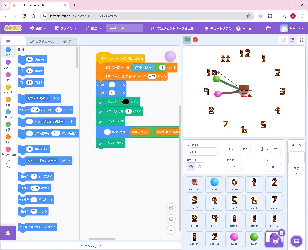 GunClock.sb3 (← ダウンロードして、Scratch環境でロードができると思います)